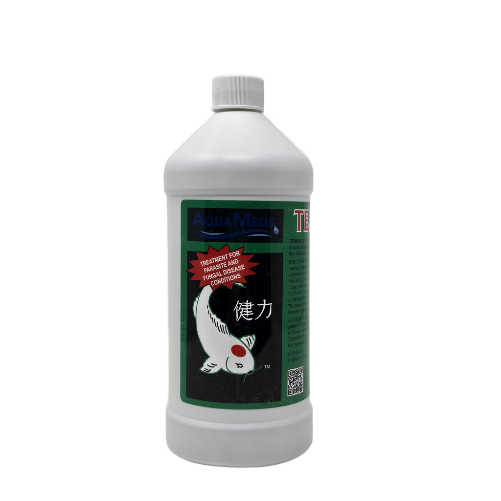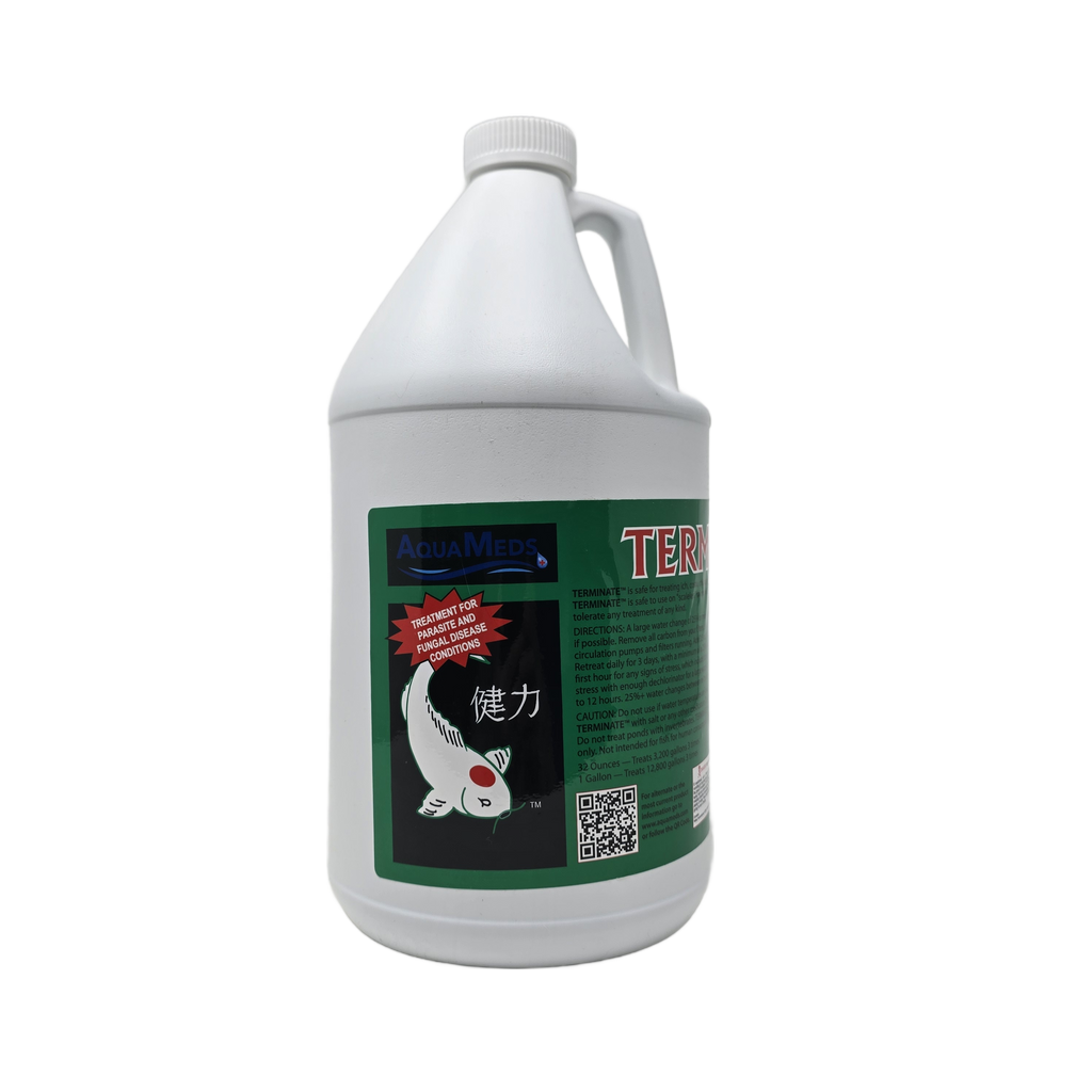 Aqua Meds is proud to introduce TERMINATE to our Aqua Meds line of quality koi pond products. Strains of salt resistant koi pond parasites, like costia and trichodina are becoming more common everyday. TERMINATE is specially formulated to treat these tough salt resistant parasites.